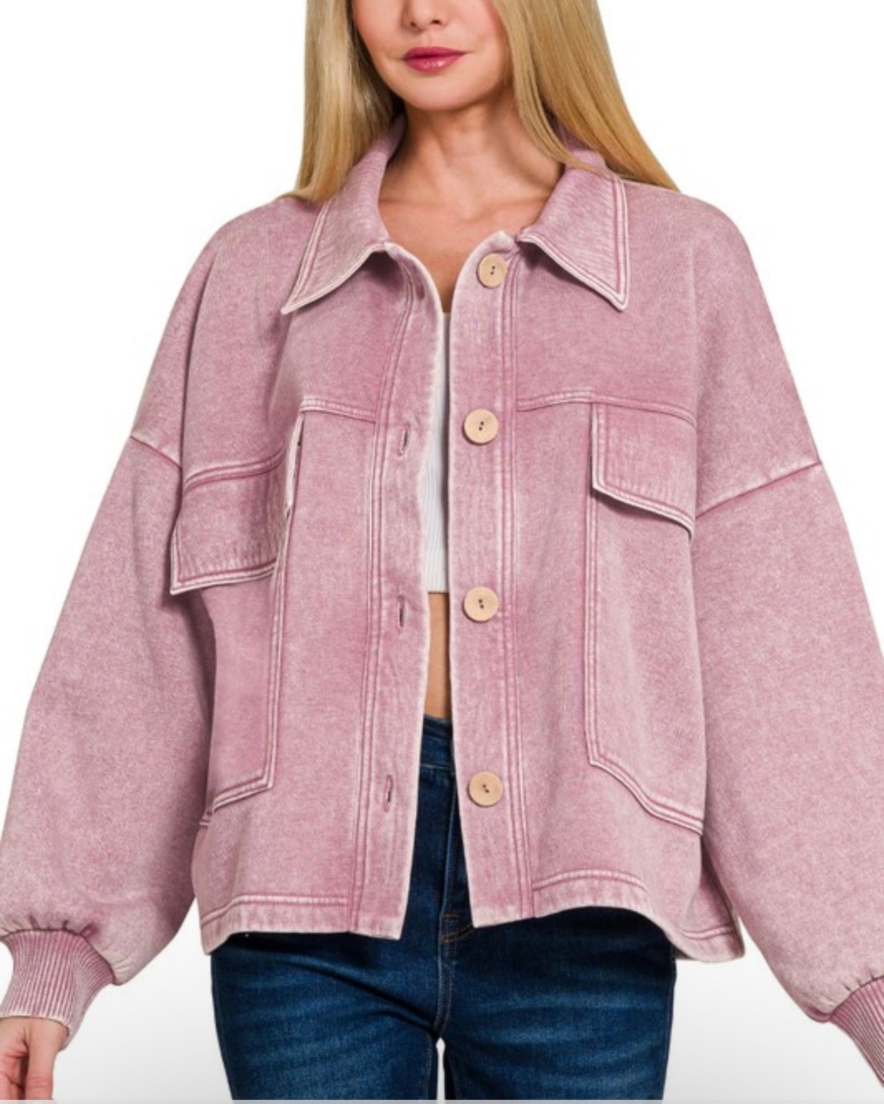 TWO FRONT POCKETS - CROPPED LENGTH - BUTTON CUFFS - FRONT BUTTON CLOSURE **Each item is unique, expect variations in color and finishing TOTAL BODY LENGTH: 22.5", BUST: 49" approx. - MEASURED FROM S/M - TRIM: 58% COTTON 37% POLYESTER 5% SPANDEX * COLOR MAY VARY SLIGHTLY DUE TO MONITOR RESOLUTION