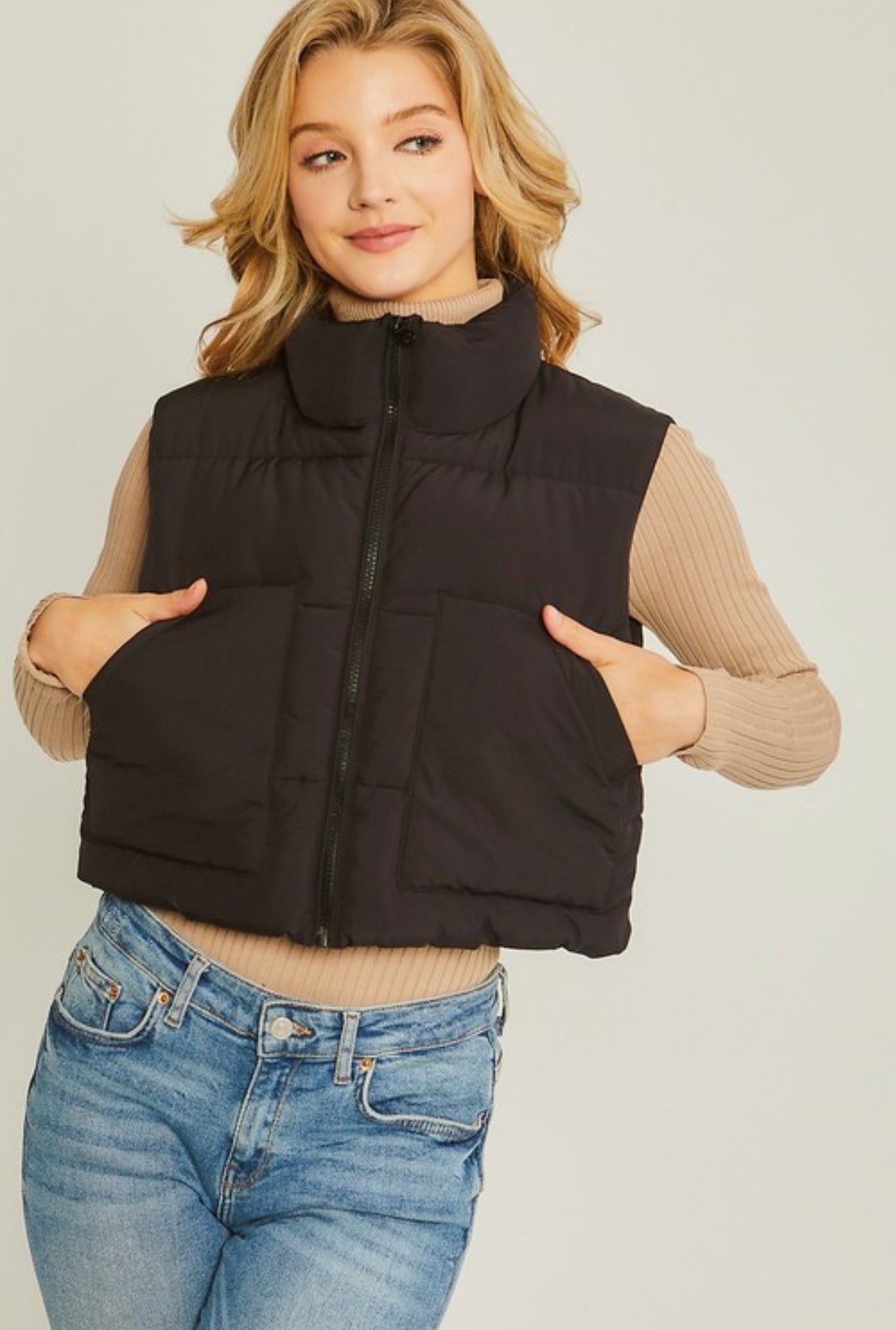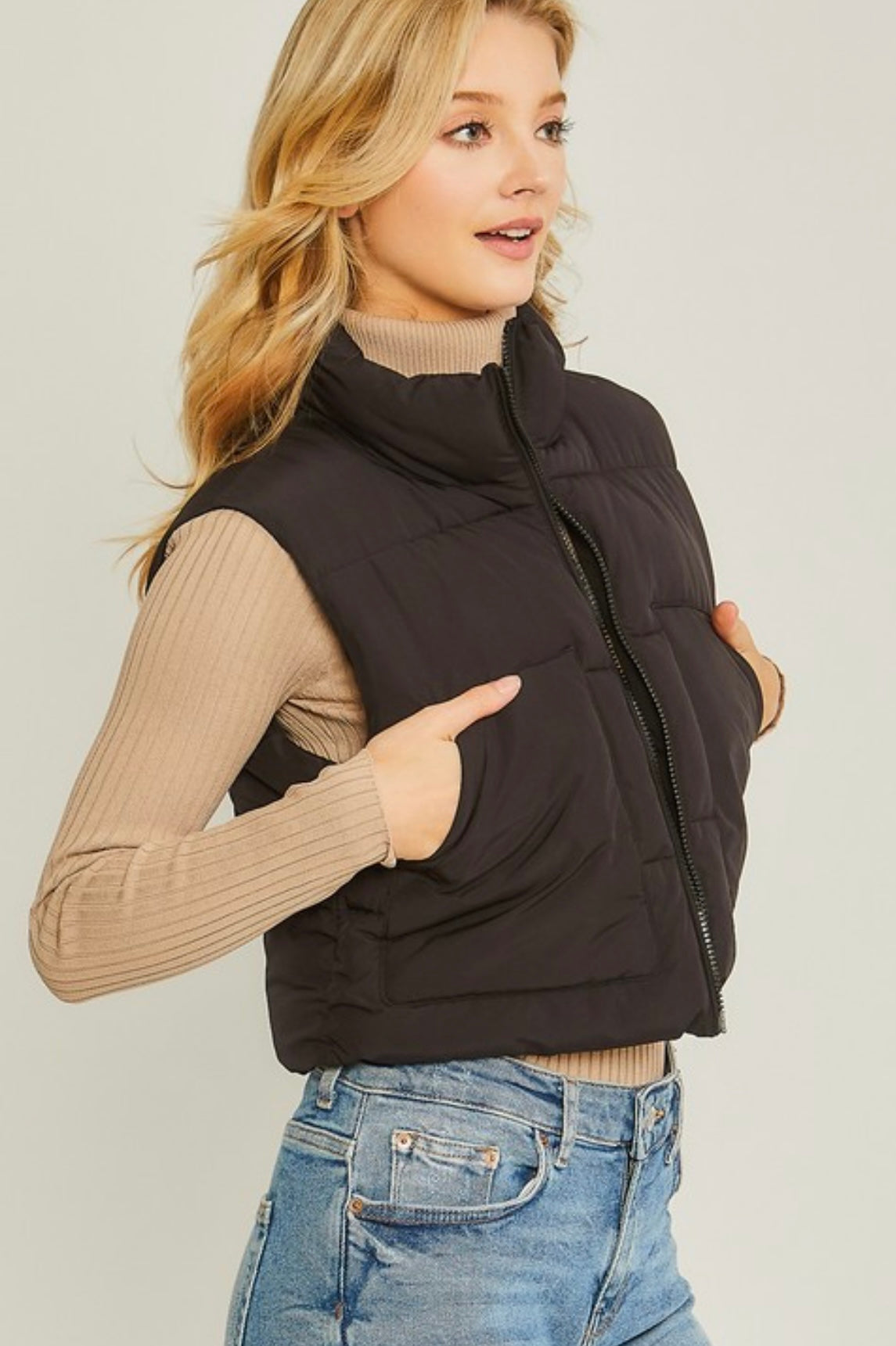 The high neck provides extra warmth and protection against the elements. Convenient pockets offer secure storage for your essentials while keeping your hands warm. Designed with a lightweight puffer material, this vest is perfect for layering without adding bulk.